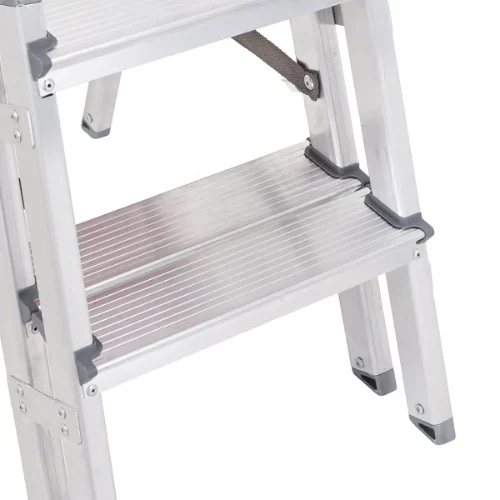 A escada doméstica em alumínio Reisam é leve e resistente, com degraus duplos para mais conforto e segurança. Certificada pelo Inmetro (Portaria nº 616/2012) e com 12 meses de garantia. Ideal para prateleiras altas e pequenos reparos.